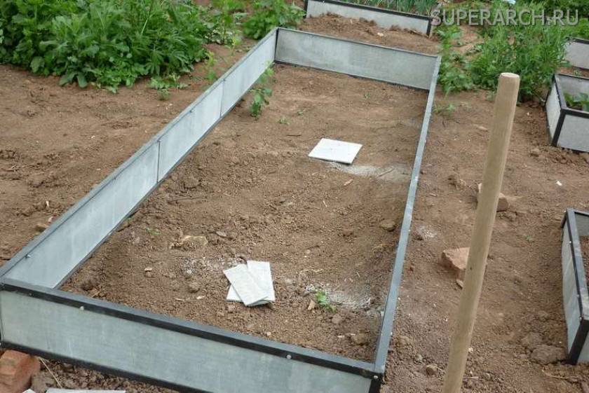 Использование плоского шифера для обустройства грядок Устройство опалубки для фундамента с помощью листов гладкого шифера — распространенное явление. Шифер не впитывает влагу, поэтому бетон твердеет в условиях нормальной влажности. Прочные панели не трескаются при загрузке тяжелой массы раствора.