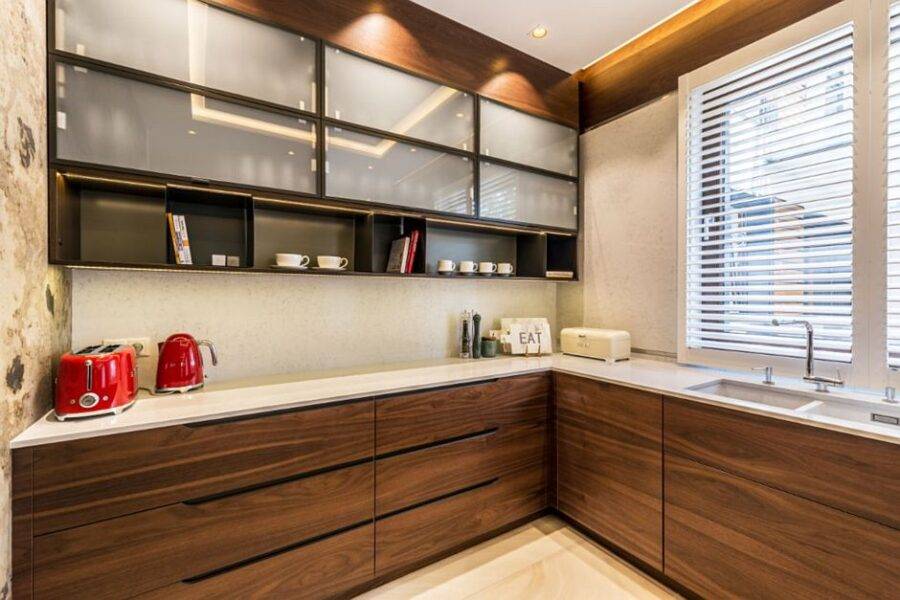 Стеклянные фасады традиционно используются для создания кухни в стилете модерн, лофт или хай-тек.