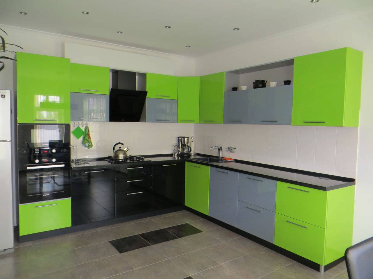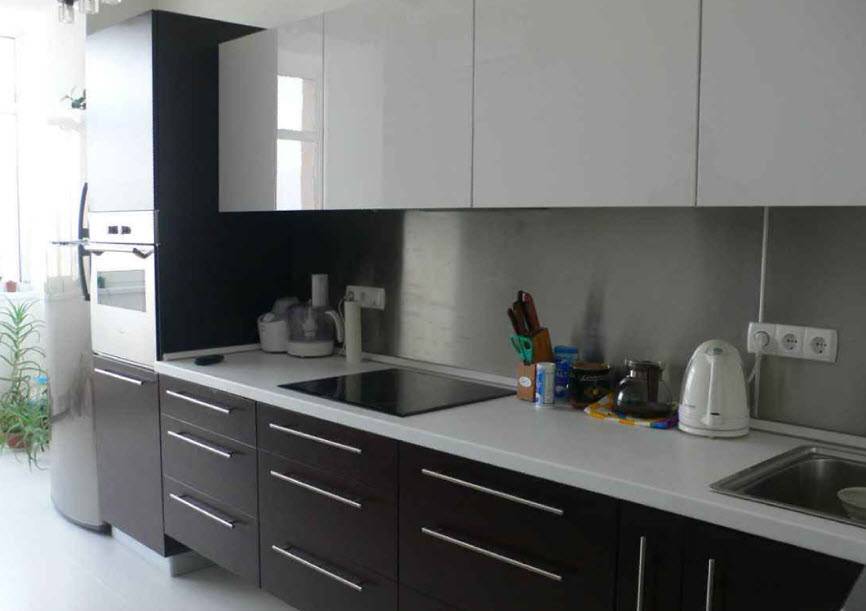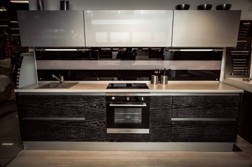 Поверхность тоже имеет значение: глянец загрязнится намного быстрее остальных. Лучше присмотреться к полуглянцевой, матовой, сатиновой и даже слегка шероховатой отделке. Исходя из этой информации, глянцевую черную кухню без ручек можно смело назвать самым непрактичным вариантом.