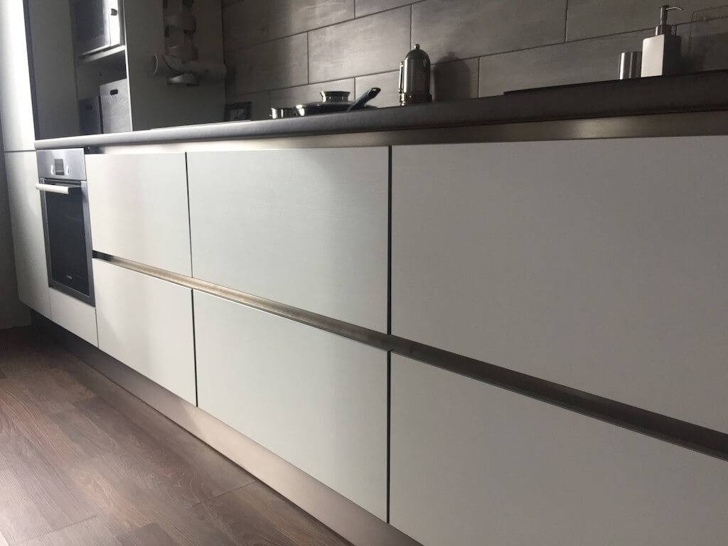 | Рис. 7. Интересное сочетание профиль-ручек в цвете серый никель и белых фасадов |