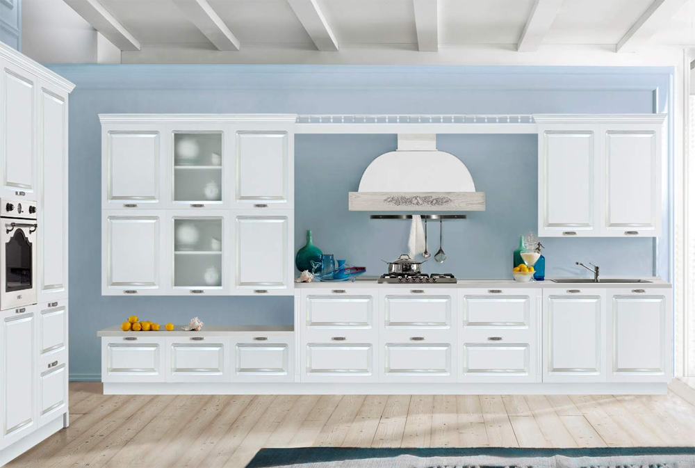 Темные и светлые деревянные фасады традиционно украшают кухни, выполненные в стиле барокко, модерн, шале, эко-стиль, кантри и его разновидности – скандинавский, английский, американский, прованс, рустикальный. Они отлично впишутся в кухонный интерьер, решенный в классическом, арт-деко или винтажном стиле.