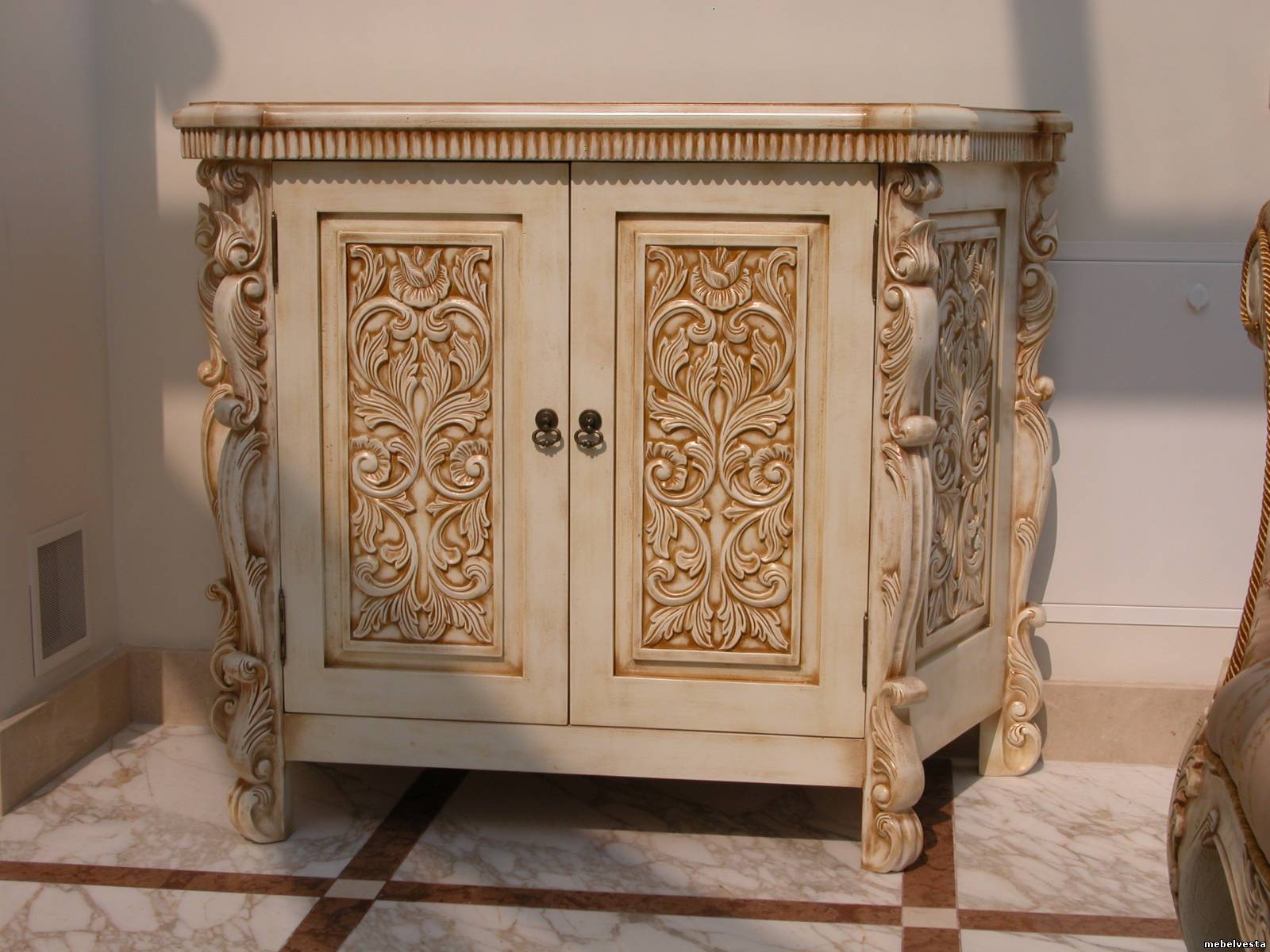 - Патинирование – оно предполагает искусственное состаривание предметов обстановки. Для этого используются специальные акриловые краски. Патинированные мебельные конструкции прекрасно подходят для классических интерьеров;