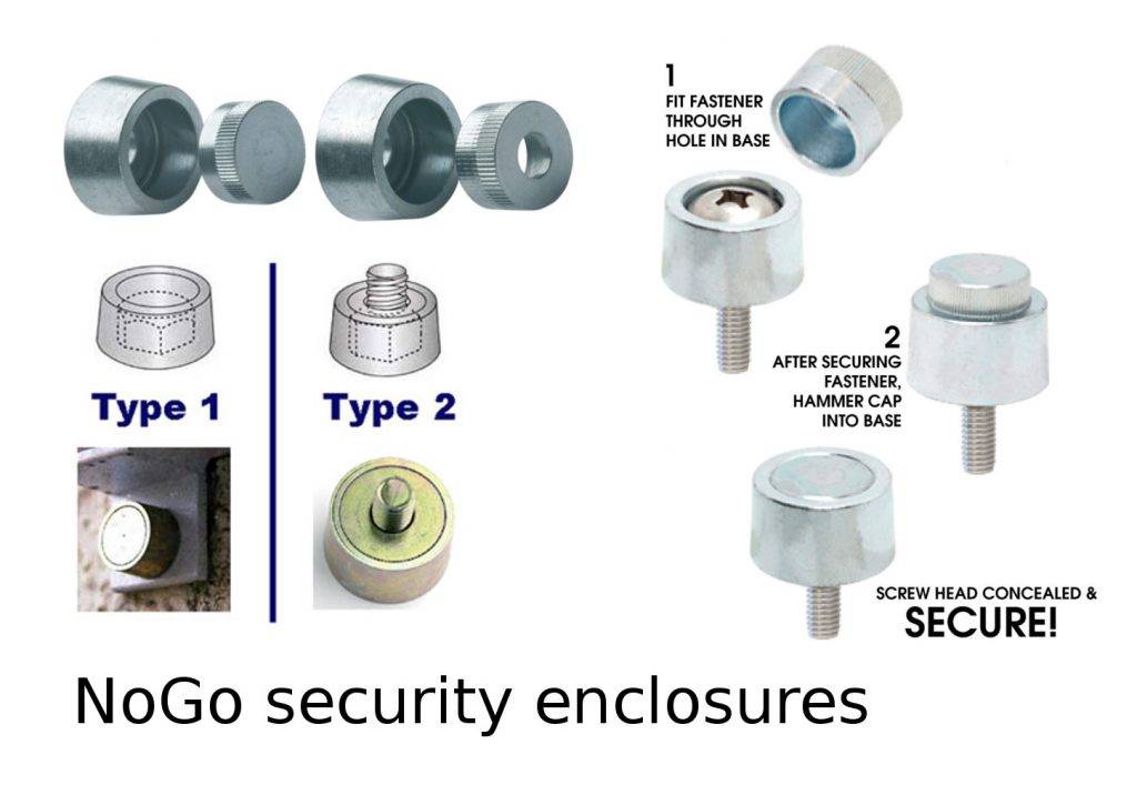 Или защитная крышка (NoGo Security Enclosure) – закручиваем болт в кожухе и забиваем сверху крышкой.