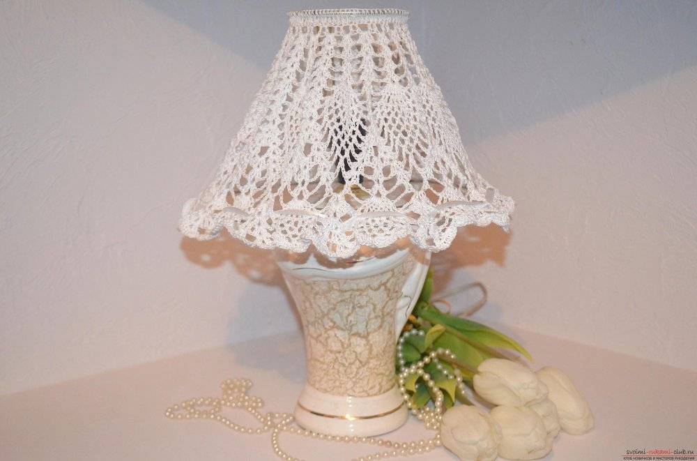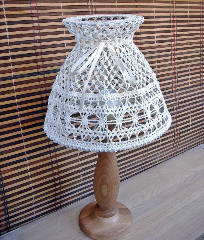 11) В результате у нас вышел красивый, нежный и оригинальный вязаный абажур в стиле прованс для настольной лампы. Так же этот вариант подойдет и для торшера.