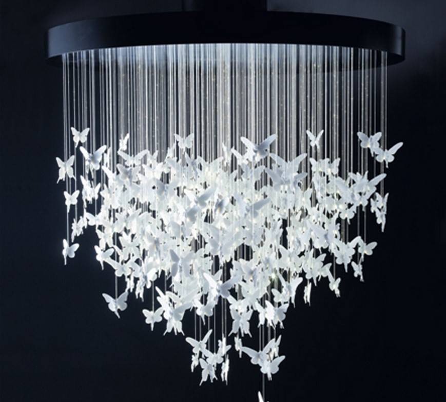Вариант светильника с мотыльками имеет роскошный и дорогой вид. Благодаря подобным характеристикам люстра очень популярна. А подготовка не требует специальных навыков и опыта работы с определёнными материалами у мастера. В процесс можно вовлечь и ребёнка, который сможет проявить творческий потенциал, продемонстрировать художественный талант.