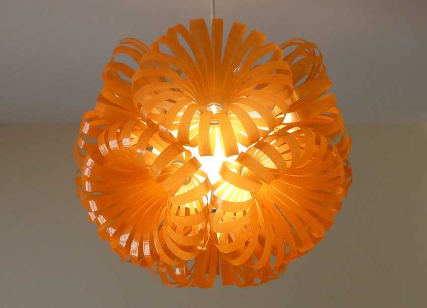 В результате получается плафон, напоминающий шишку. Выглядит это действительно очень интересно.