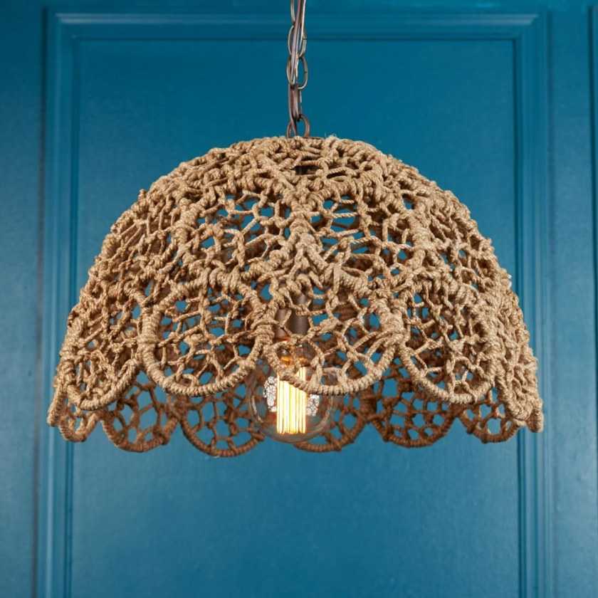 - Каркасным – из веревки либо цепочки вяжется или выплетается накидка-абажур.