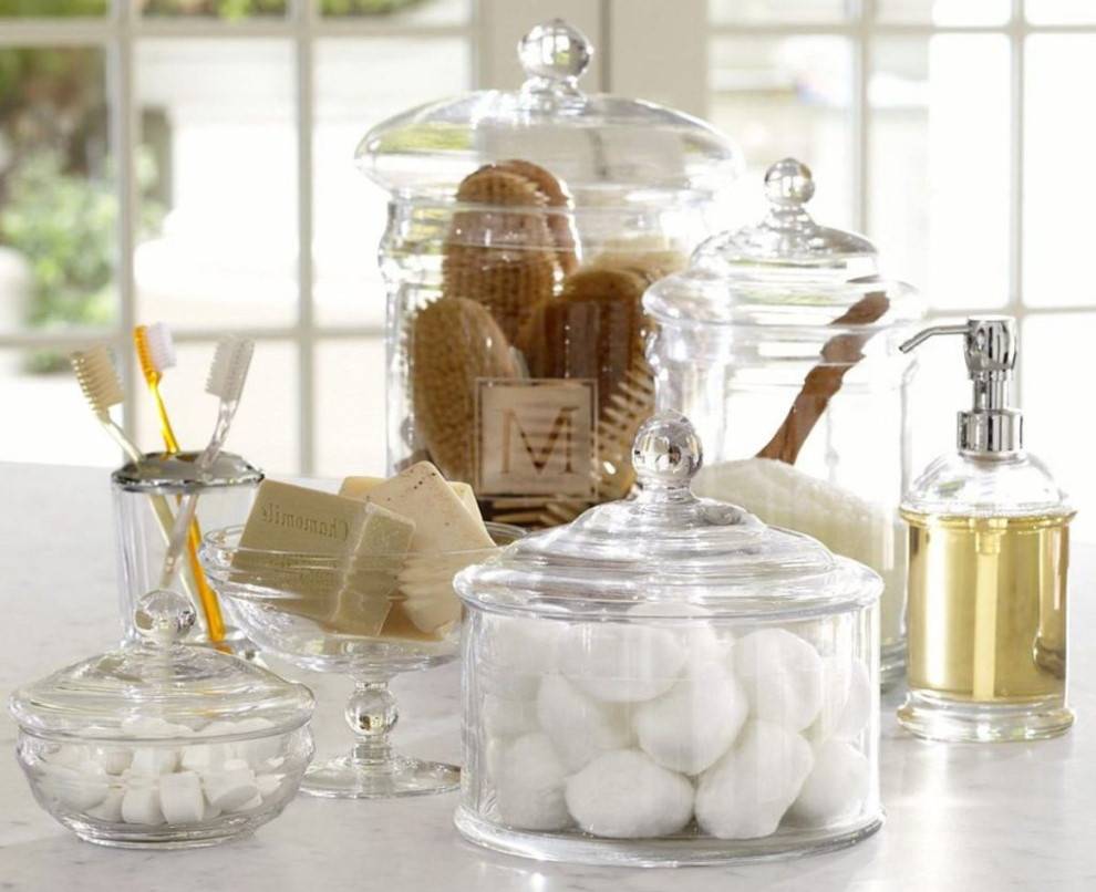 Красивые стеклянные баночки удобны для хранения мелочевки и создают атмосферу роскоши