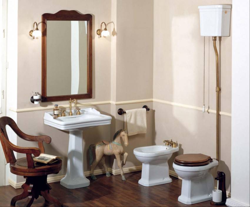 Если ванная выполнена в классическом стиле, а это предполагает дорогую основательную добротную начинку ванной комнаты (элитное сантехническое оборудование), без аксессуаров для ванной из дорогих натуральных материалов не обойтись, эта комната не примет подделок. Бронза и есть тот материал, который образ ванной сделает законченным, придаст ему еще больше светскости, респектабельности.