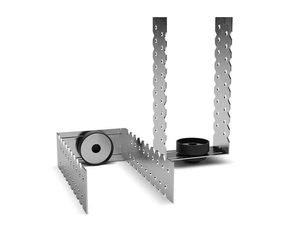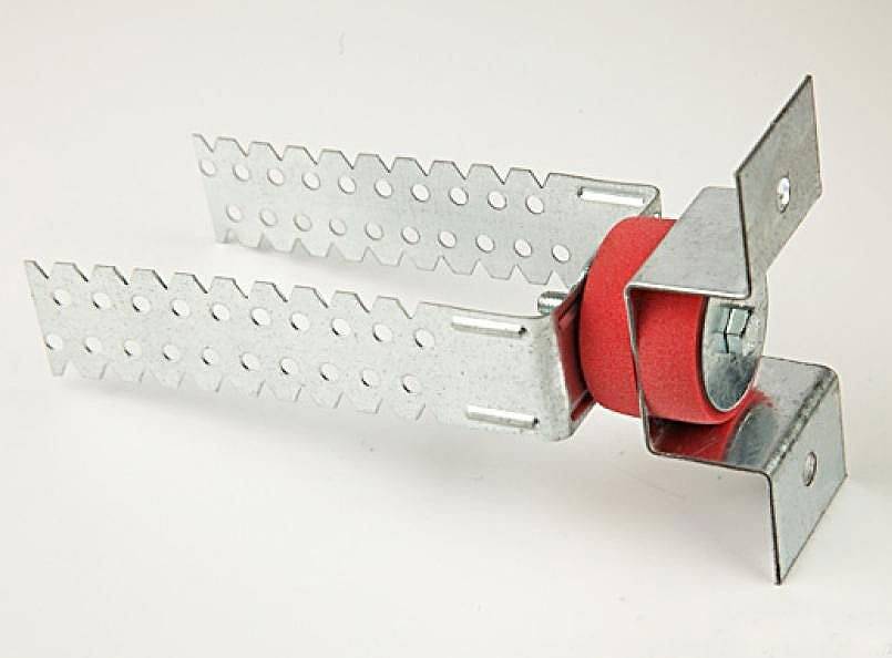 В качестве последних используются подвесы: виброизолированный (с резиновой шайбой, снижающий передачу волны на конструкцию) и гасящий (нежёсткая фиксация через прокладку). Для изоляции от перекрытия, а также слоёв между собой берут демпферную ленту. Она отсекает структурные шумы, проходящие через несущие конструкции).