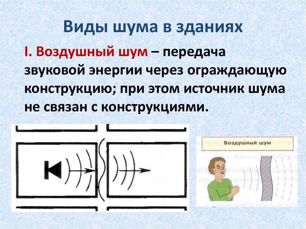- Акустические. Распространяются по воздуху: громкие разговоры и лай, шум телевизора, пылесоса или радио и т. д. Как правило, источник находится в соседнем помещении.