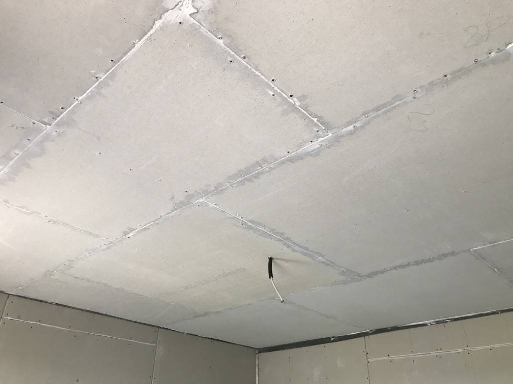 Плиты должны быть уложены без щелей между ними, для чего требуется абсолютно ровная поверхность. Поэтому перед установкой звукоизоляции потолок штукатурят и выравнивают.