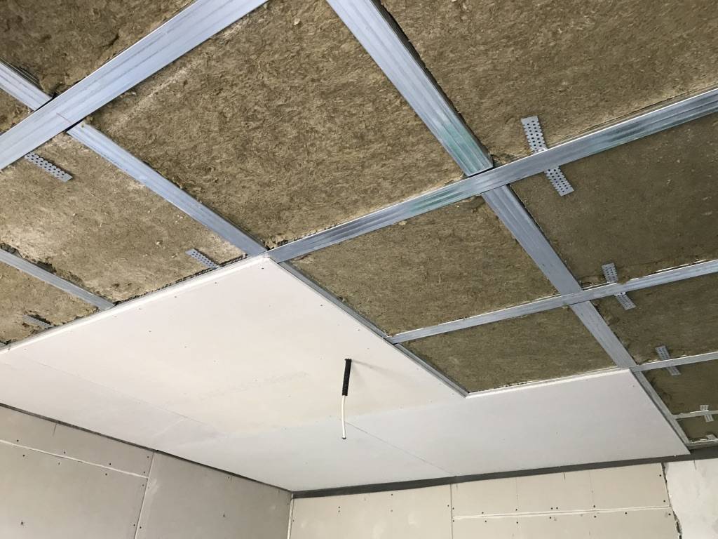 Самый распространенный способ – подвесные акустические потолки из гипсокартона. Этот материал и сам по себе является достаточно хорошим звукоизолятором, а если между ним и основным потолком дополнительно проложить слой другого шумопоглощающего материала, эффект будет ещё лучше.