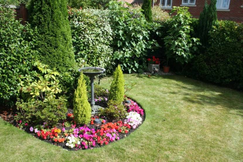В дополнении к цветам можно сажать хвойные растения. Они выглядят красиво круглый год и хорошо гармонируют с яркими и пышными цветами: