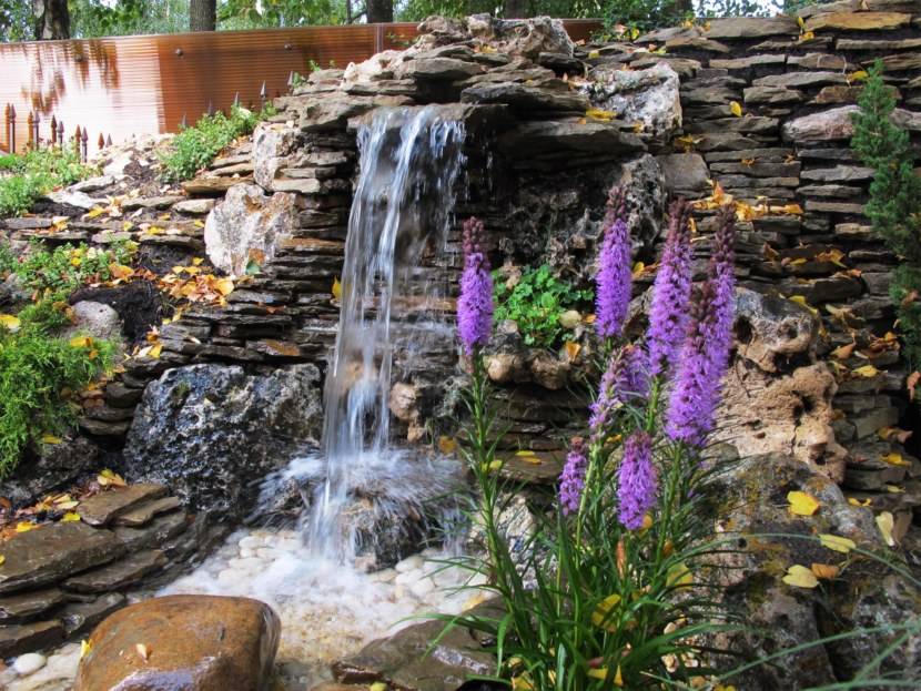 альпинарий с водопадом требует тщательного ухода – два — три раза в год необходимо сливать воду и прочищать всю систему. Но полученный результат компенсирует все хлопоты по устройству и обслуживанию водопада на своем участке.