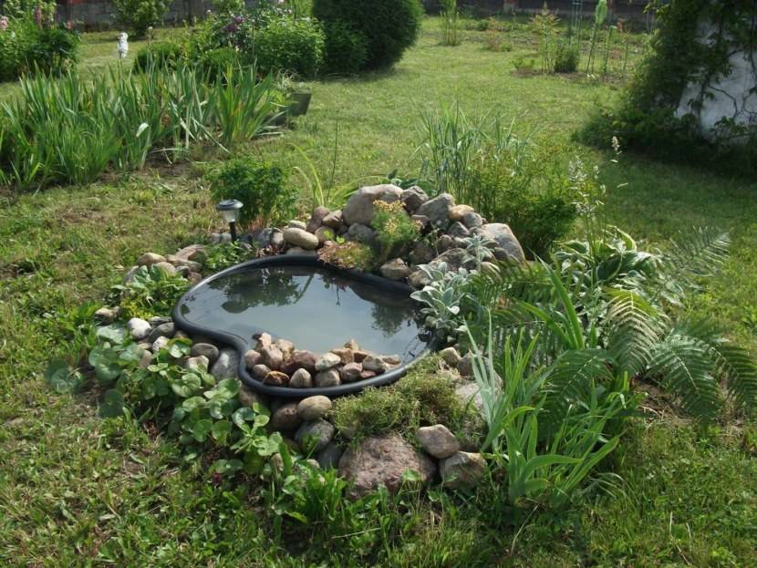 Края этой гидроизоляции на полметра выпускаются наружу и декорируются камнями. В таком пруду можно развести такие растения, как кувшинки, лилейник, аир, камыш.