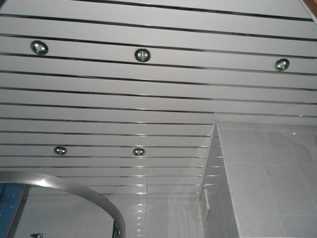 Защелкнув последнюю панель в креплениях, мы получаем готовый реечный потолок. Осталось установить в него встроенные светильники.