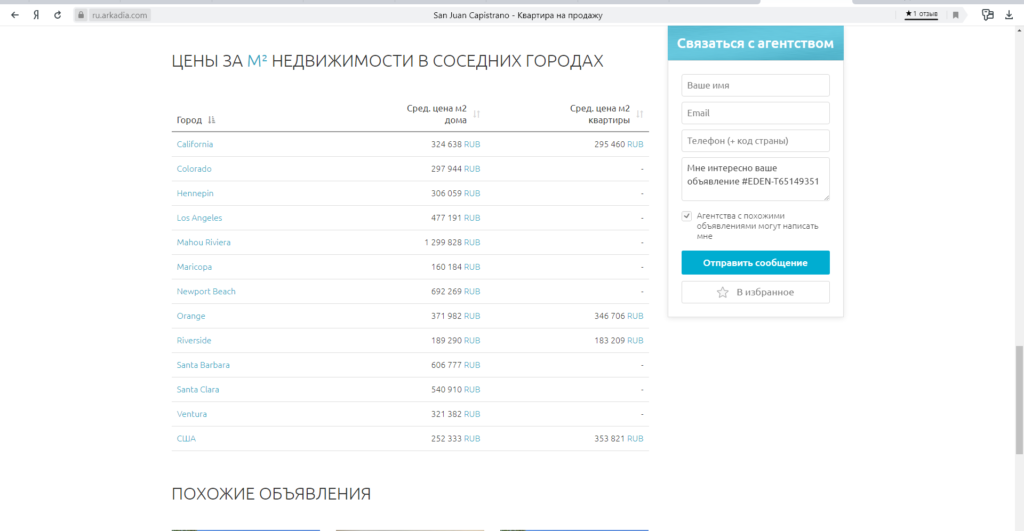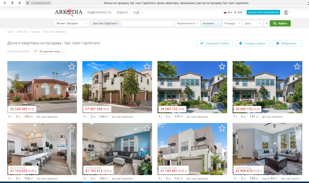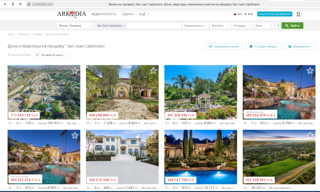 Например, на международном портале недвижимости Arkadia цены на жилье в небольшом калифорнийском городке Сан-Хуан-Капистрано варьируют от сорока миллионов рублей до полумиллиарда.