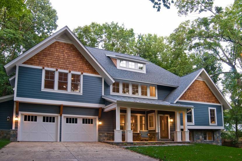 - Крафт. Огромное количество дерева, высокие крыши, расположенные на разных уровнях. Широкие веранды с деревянными бортиками. Открытая планировка, грубая внешняя обработка фасада.