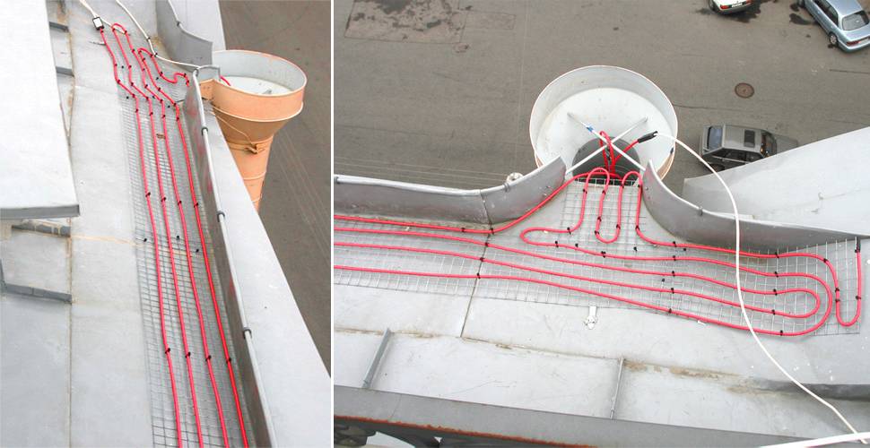 Особое внимание следует уделить выходам труб и воронкам. Обычно здесь требуется дополнительный обогрев