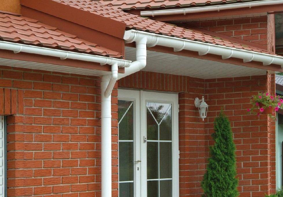 Водосточная система создает дополнительную защиту крыльца от попадания воды, а при уклоне козырька вперед она необходима, чтобы уберечь человека от стекающих с кровли струй.