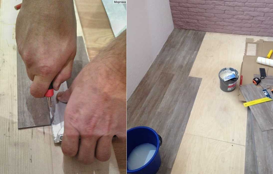 Обрезку виниловой плитки можно выполнить с помощью обычного ножа