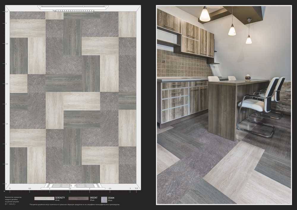 Таркетт к каждой коллекции имеет готовые варианты раскладки с указанием расцветок