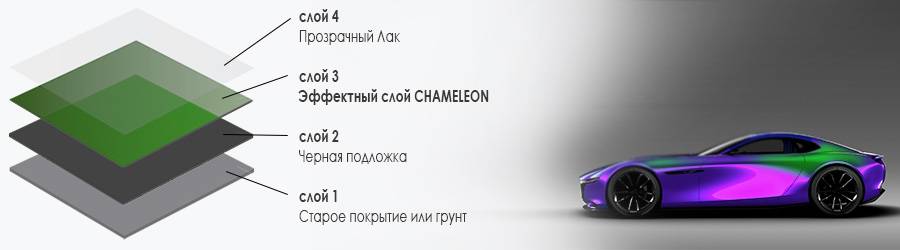 Автомобильный тип покрытия хамелеон имеет такие свойства: