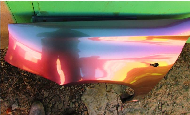 Современная краска хамелеон демонстрирует яркие переливы при свете солнца. Богатая цветовая гамма на кузове авто может продемонстрировать лакокрасочная смесь на основе искусственных пигментов, помещённых на металл.