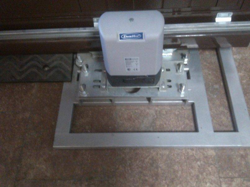 Следует устанавливать, как видно на фото привода для ворот на боковую область стены. Причем конструкция должна выдерживать вес привода, а также ворот. При наличии штукатурки, от нее стоит избавиться. Затем приварите металлический уголок размером в 100 мм в ширину.