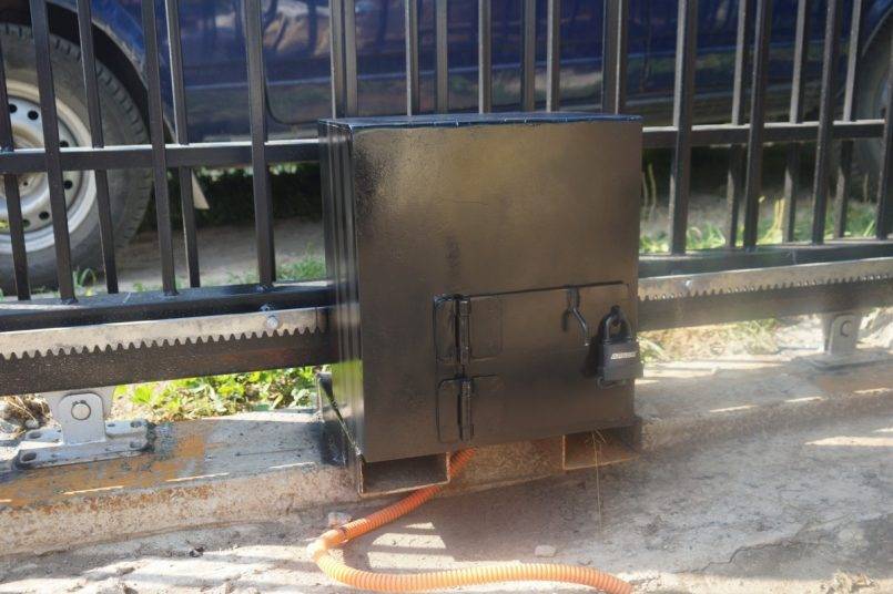 Автоматический электропривод может давать некоторые сбои. В частности это касается холодной поры года, зимы. Для избегания этого необходимо проложить нагревательный кабель. Чтобы защитить устройство от дождливой погоды необходимо установить дренаж, предназначенный для слива жидкости. Понадобится также козырек.