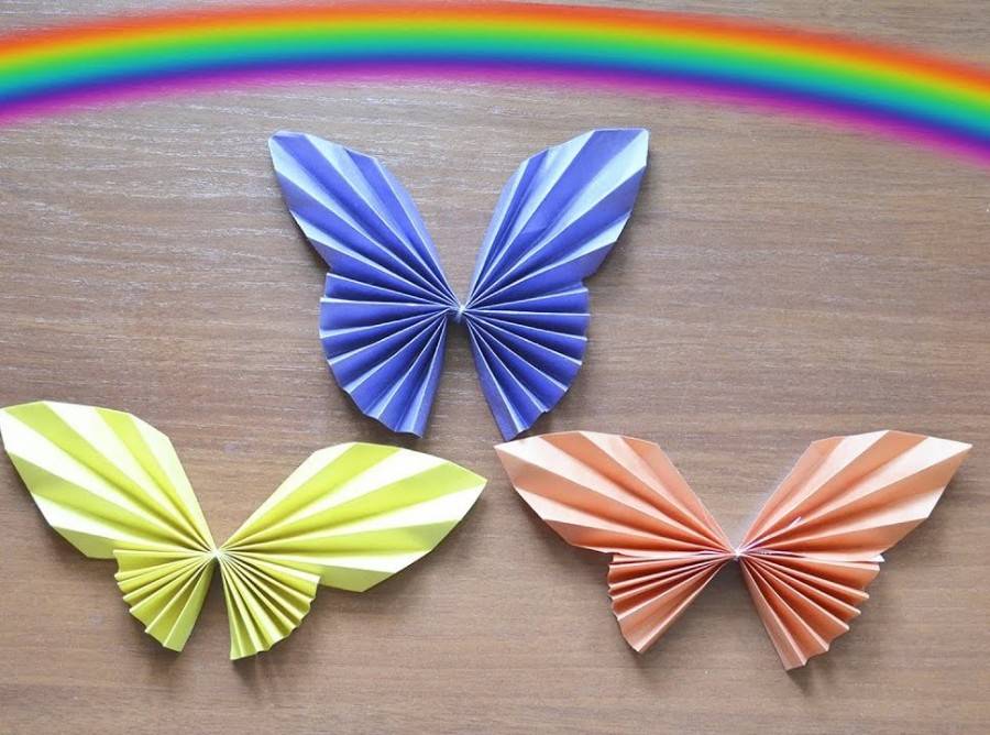 Таким же способом можно сделать мотыльков из цветной бумаги, которые могут радовать глаз малыша в детской кроватке, быть украшением любой открытки или даже праздничного стола.