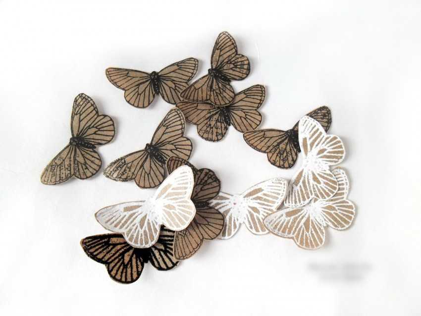 Очень интересно смотрятся многослойные бабочки из ажурного материала и обычной бумаги.
