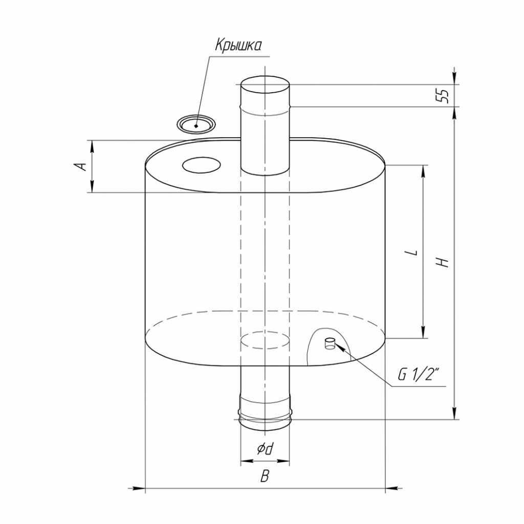 1. Емкость самоварного типа – устанавливается на выходной патрубок дымохода. Нагрев происходит за счет тепла уходящих в трубу дымовых газов. К штуцеру на дне бака подсоединяется кран для разбора горячей воды. Если у вас нет помывочной, то данный вариант будет отличным решением для нагрева