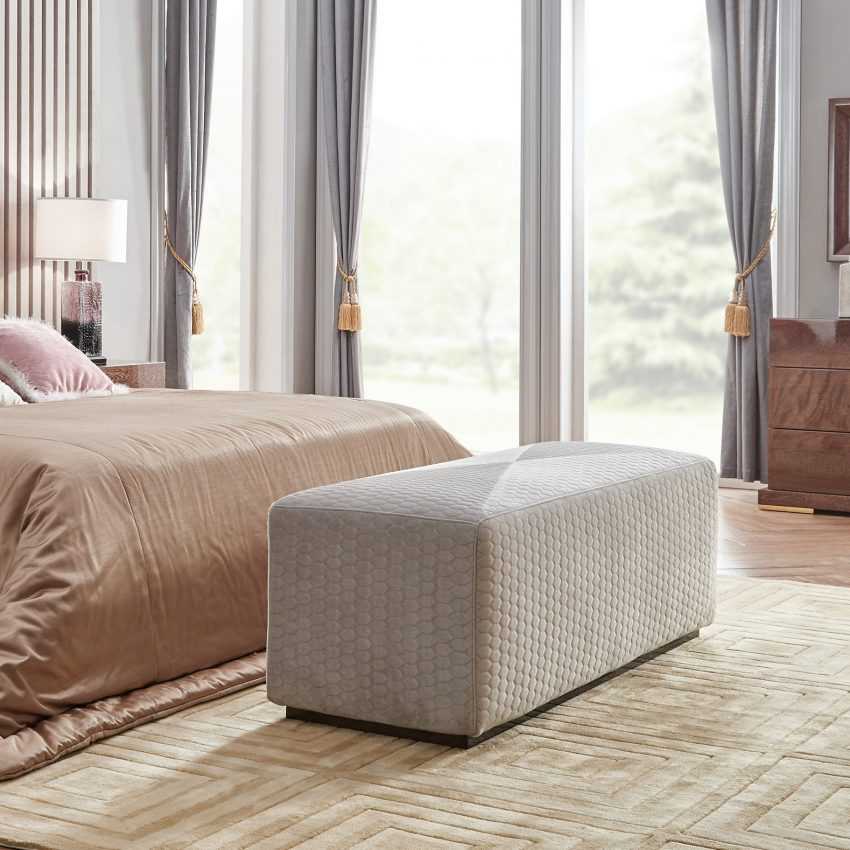 - Банкетка-пуф служит альтернативой обыкновенным стульям для сидения. Стулья не всегда органично вписываются в интерьер спальни, когда мягкие пуфы, подобранные по стилю отлично дополнят мебельный ансамбль.
