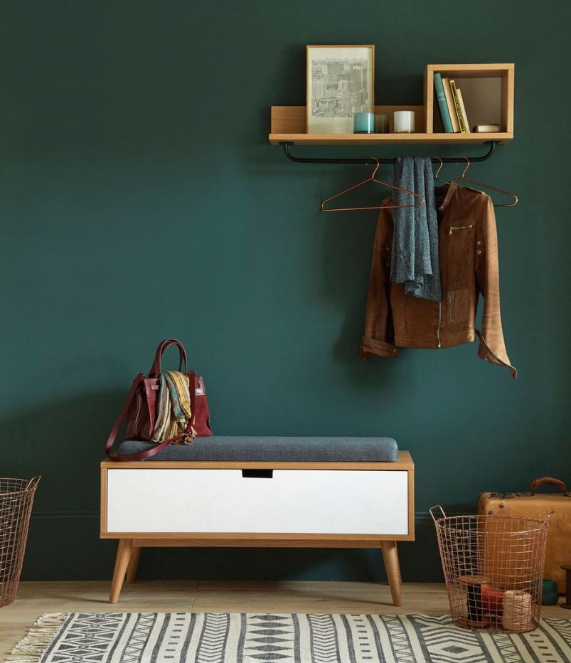 В первую очередь цвет банкетки должен гармонировать с общим цветовым решением прихожей. Модели из натурального дерева обивают тканью спокойных, естественных тонов. Если прихожая выдержана в одном цвете, цветная обивка банкетки может послужить ярким акцентом в помещении.