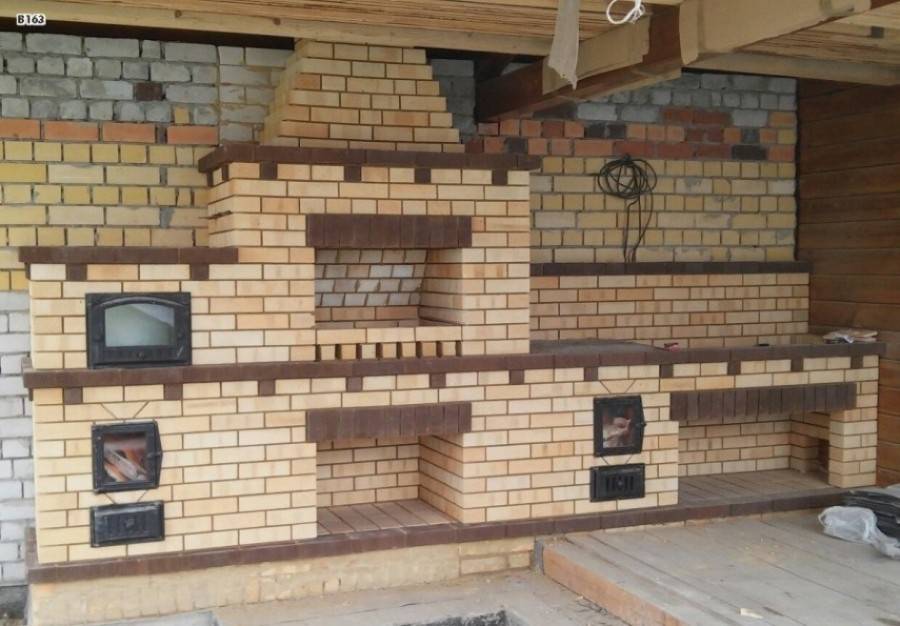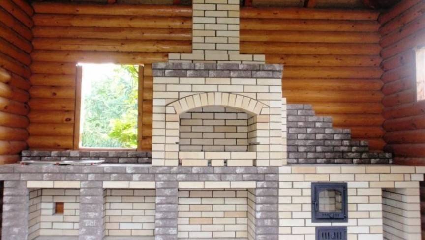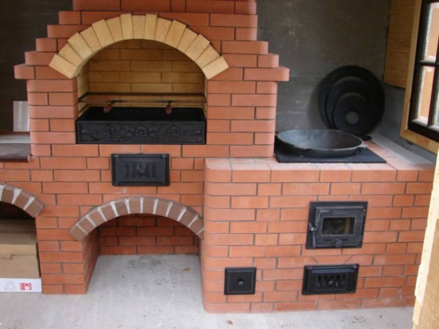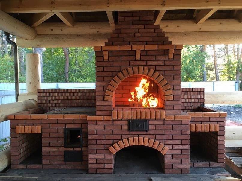 Фото 1. Очевидными плюсами солидной конструкции из кирпича будут: отдельная печь, дымоходы и много места для приготовления пищи.