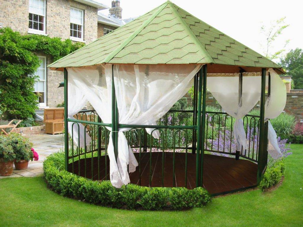 Выбор места, где будет располагаться будущая беседка из металла для дачи, не менее важный аспект в строительстве. Беседка должна располагаться в выгодном месте, чтобы был красивый вид и отсутствовали сквозняки. Например, если у вас на территории участка есть небольшой пруд, то беседку лучше всего построить на берегу. Ее должно быть видно отовсюду. Она будет не только местом, где можно хорошо провести время. Беседка должна украшать всю территорию участка.