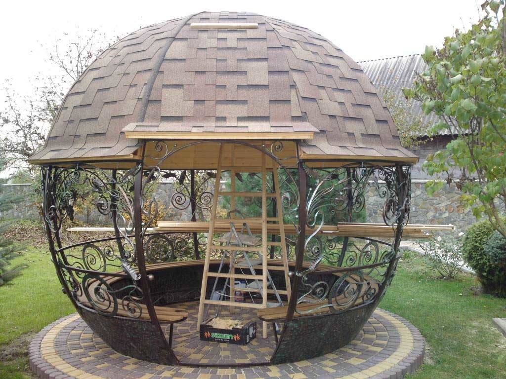 Интересны шарообразные беседки, где стенки и крыша изготовлены как единая округлая конструкция.