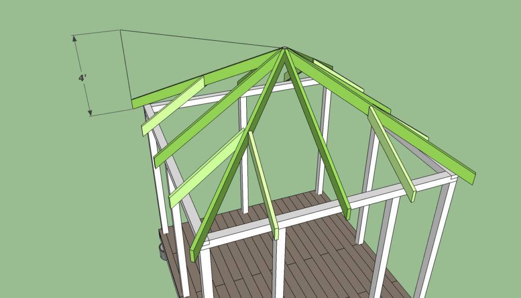 Монтаж крыши беседки из дерева