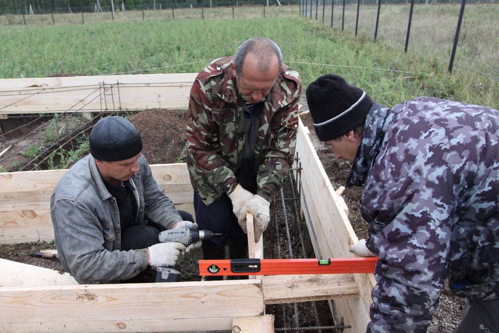 Работу начинайте с сооружения опалубки: возьмите фанеру либо доски, сбейте их в соответствии с заранее составленным чертежом, избегая появления трещин и соблюдая требуемый наклон.