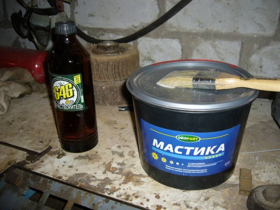 - битум вводят в бензин маленькими порциями и перемешивают до полного растворения;