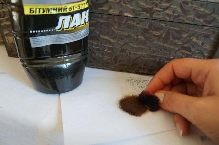 Этого вполне достаточно, чтобы из средства повыходили все пузырьки воздуха. Технические характеристики битумного лака БТ-577 таковы, что можно наносить его на поверхности кисточкой, валиком или аэрографом. Если будут залакированы небольшие по площади поверхности, то инструмент можно будет окунать в лак, а если вскрыть составом горизонтальные стенки с большой площадью, то лучше применять методику налива.