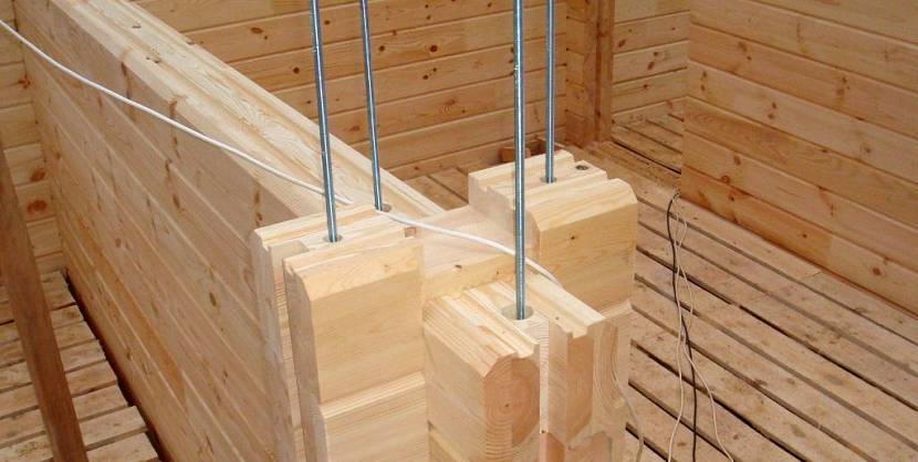 Усадка в таком доме маленькая (за несколько лет от 6 до 8 сантиметров на 3 метра по высоте). Так что не нужен для нее перерыв. А специальные домкраты-компенсаторы вообще устранят ее влияние. Главное – не забывать их подкрутить вовремя. Чтобы не дуло, снаружи между венцами прокладывают джут или льняную бечевку.