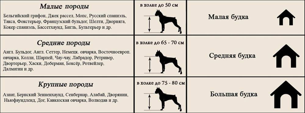 Таблица соотношения породы к размеру будки ФОТО: policom-rt.ru