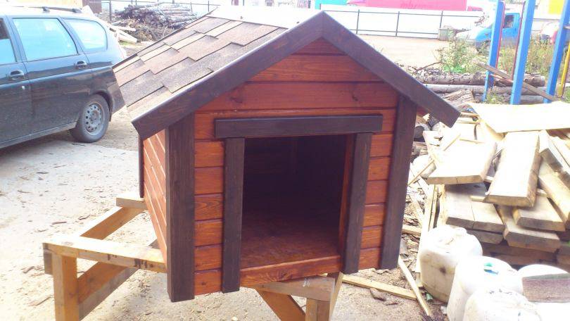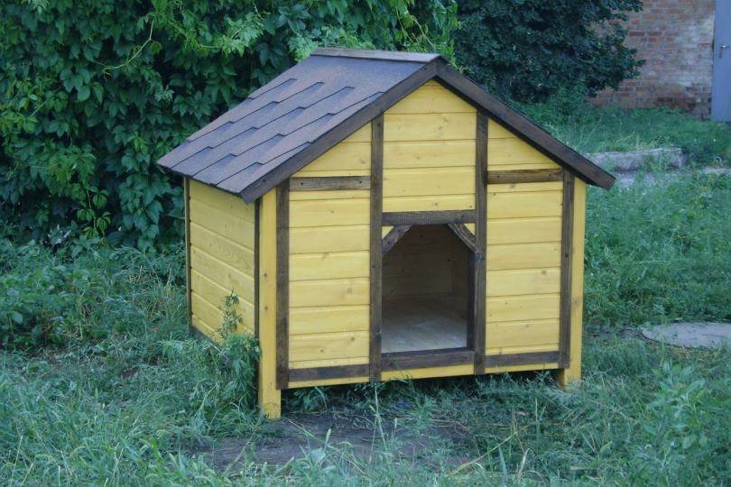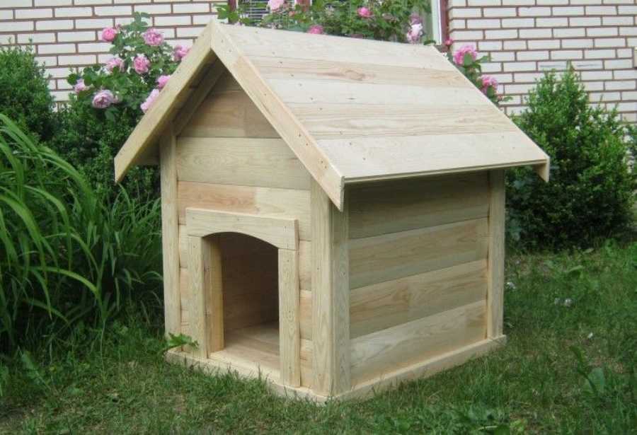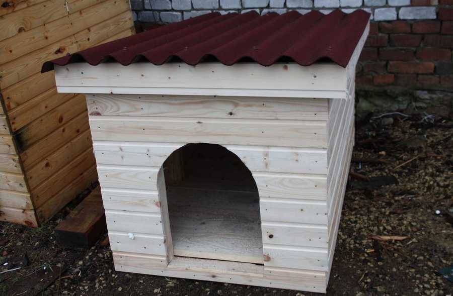 Сначала строят каркас из брусьев, а после уже обшивают его древесиной. Обязательно все делается без щелей и зазоров, а доски должны быть очень гладкими, чтобы пес не загнал занозу.