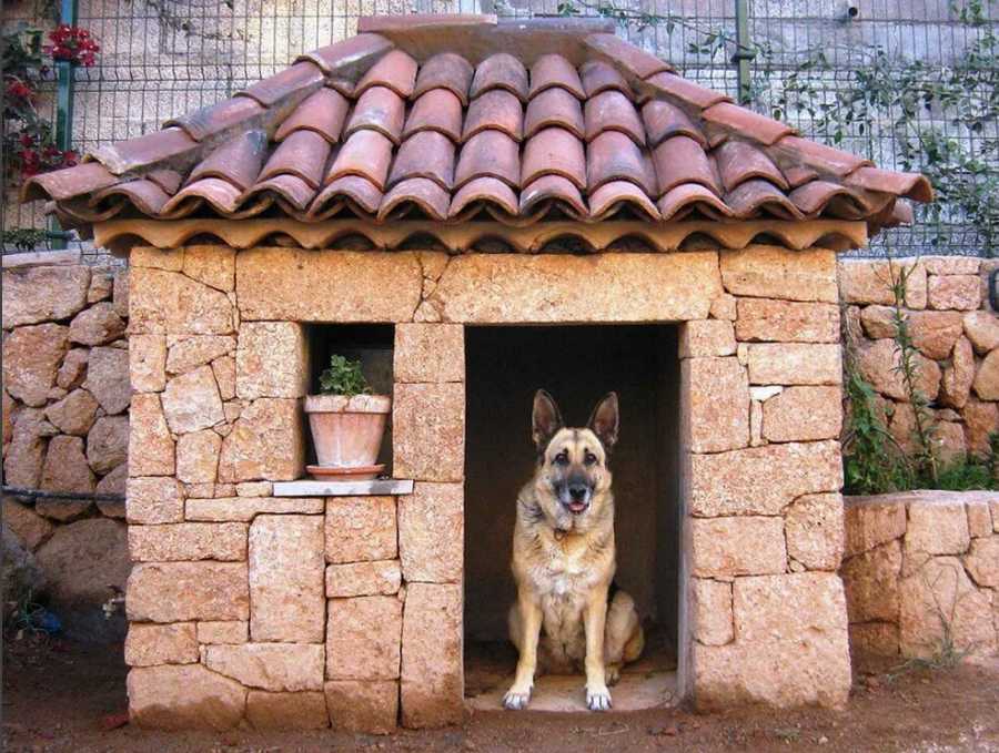 Цельнокаменное или бетонное сооружение в виде уютной норы гораздо комфортнее для домашнего сторожа, собакам тоже доступно восприятие своего дома как крепости.