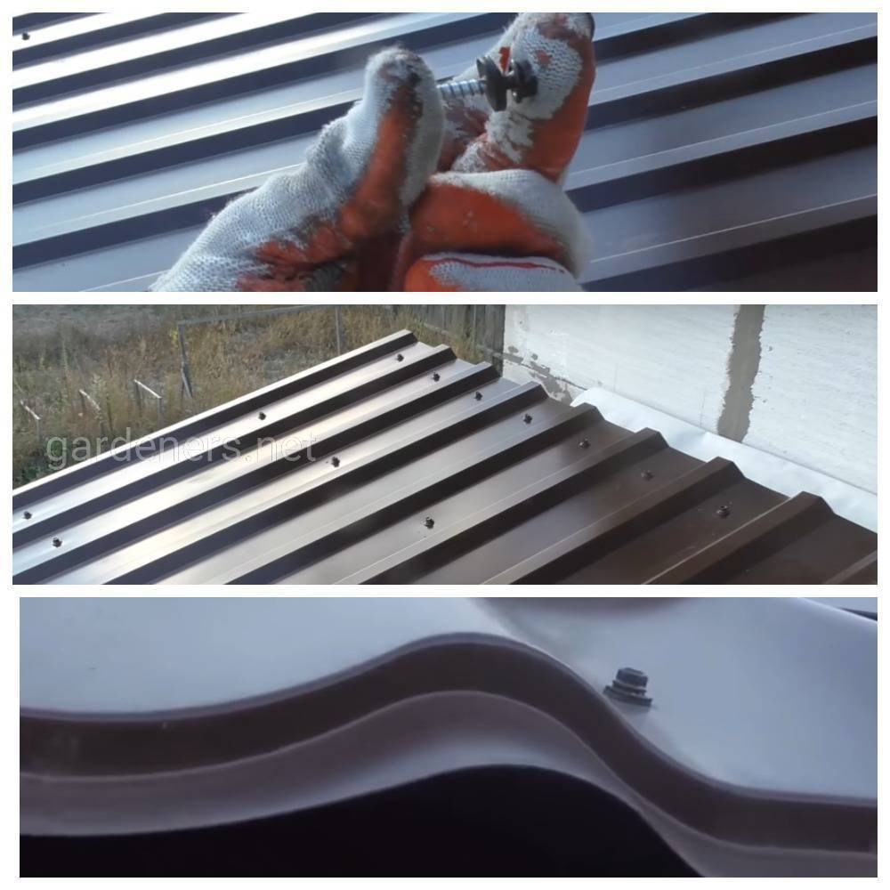 Данная ошибка встречается чаще всего, не смотря на то, что в этом вопросе есть чёткие инструкции производителей. Вкручивать саморезы нужно только в нижнюю волну. Такое крепление позволяет надёжно и плотно прижать лист к обрешётке, чего не скажешь о размещении саморезов на верхних волнах.