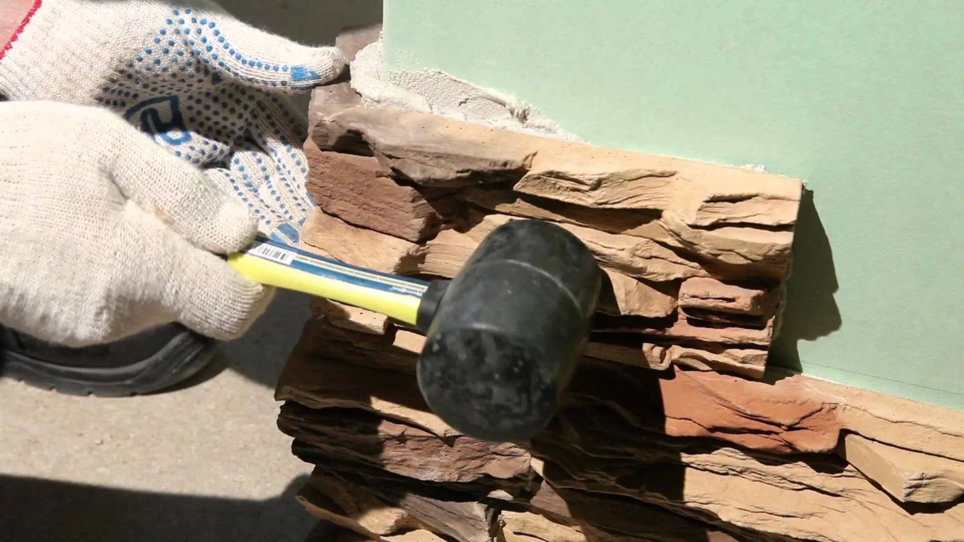 Резать эти камни можно и болгаркой, но гипс при этом сильно пылит. Кроме того, поскольку «камень» из гипса хрупок, его можно, подобно стеклу, ломать, проведя предварительно в нужном месте глубокую риску. В качестве инструмента в этом случае используют самодельные резаки с острым крюкообразным концом. Вопрос «Чем резать?» допускает несколько ответов. Ответ на него даёт отделочник на конкретном рабочем месте, исходя из сложившихся условий и личного опыта.