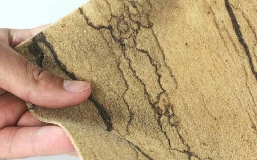 Песчаник не так известен, как гипс или пластик, но с каждым годом количество его поклонников возрастает. Объясняется это широкой областью применения и потрясающим результатом. Используется для внутренней и наружной отделки. Отличается лёгкостью и практичностью, толщина полотна не превышает 7 мм, состоит из трёх слоёв: